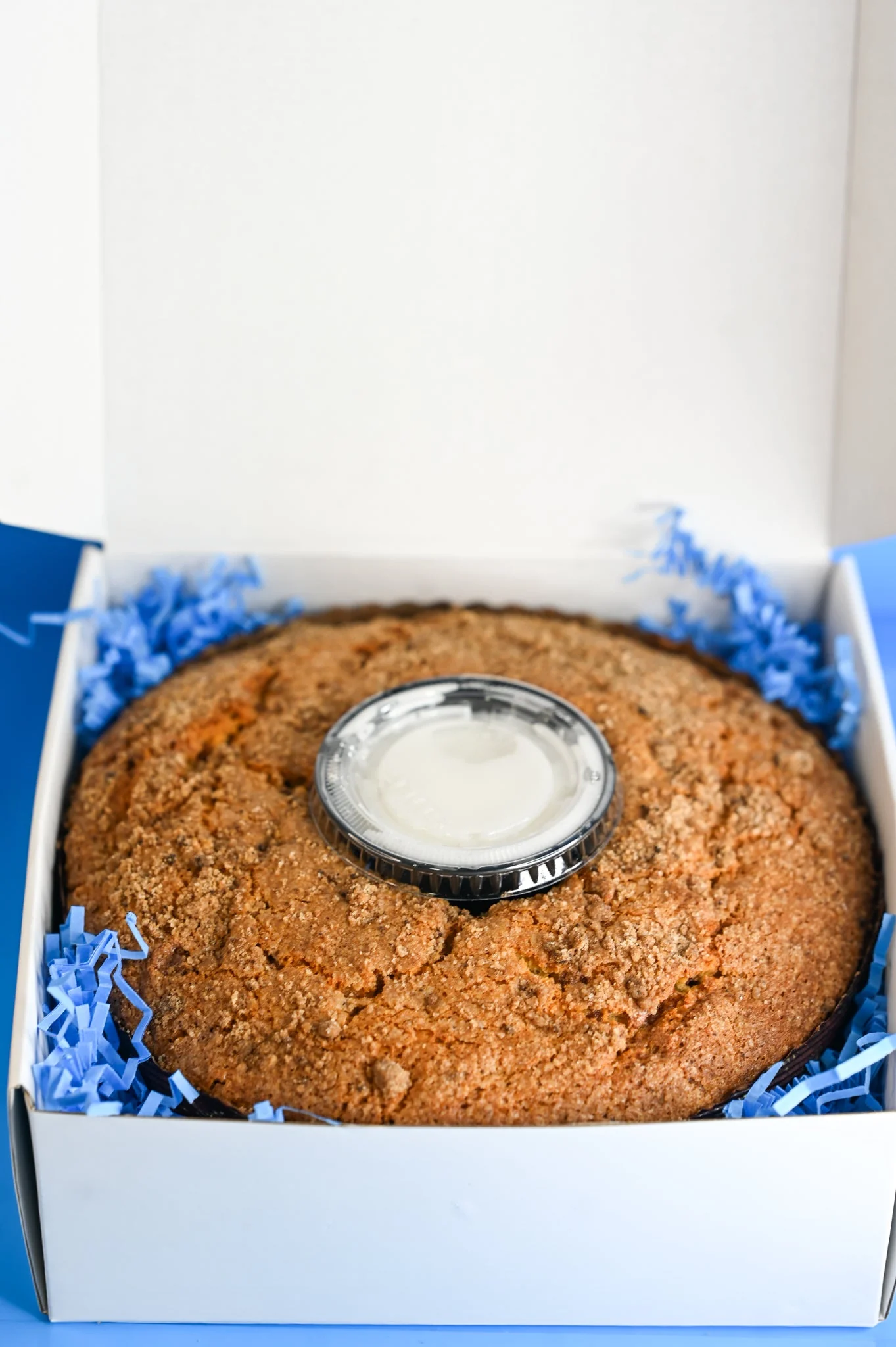 Complete with cinnamon infused cake, a decadent layer of fresh apple preserve & a convenient side of our homemade icing glaze - this coffee cake is design to "WOW". Meticulously & beautifully packaged, our coffee cakes are giftable for any loved one - and don't forget to add a FREE custom gift message!
