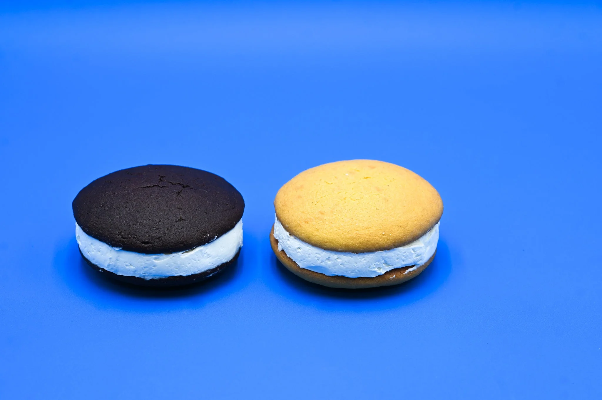 This 2-Pack features two irresistible flavor options - chocolate AND vanilla! All sandwiched together with our homemade, smooth traditional frosting - perfectly balanced with just the right amount of sweetness! Our famous, from scratch recipes date back to our opening in 2005 & are adored by our entire community…satisfaction guaranteed! Each whoopie pie is individually wrapped and packed with a small side of powdered sugar!