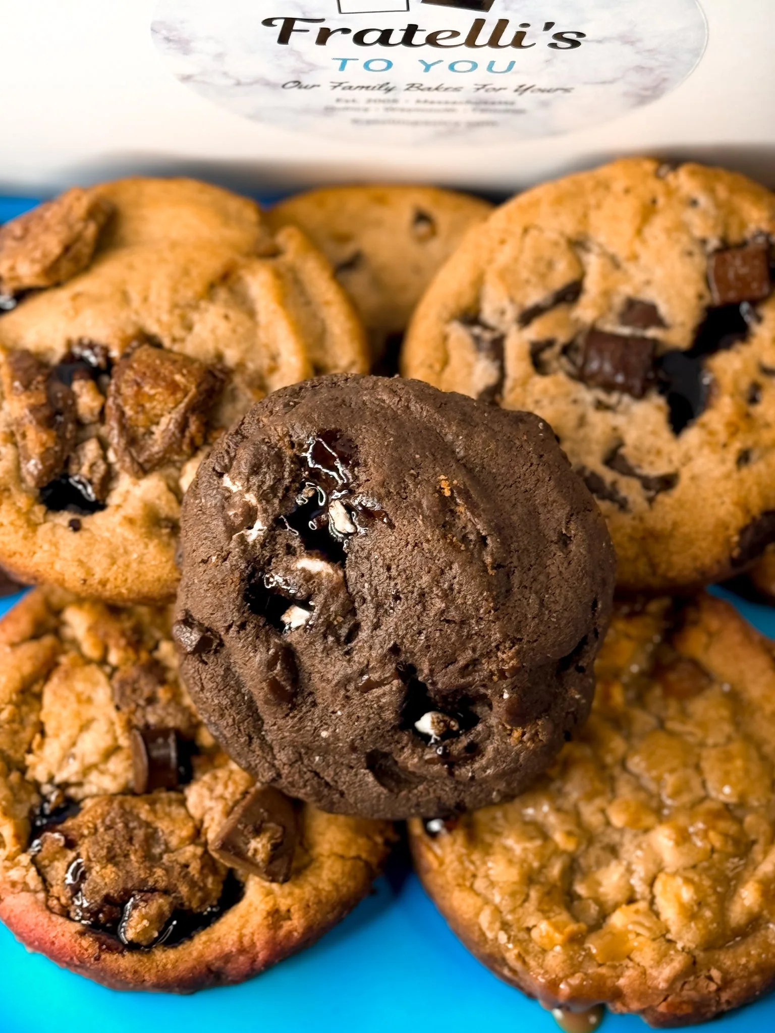 Includes 8 gourmet cookies including your choice of flavors! Each jumbo 5oz cookie is fresh baked (with love) at our family owned bakery in Quincy, MA. LOADED with flavor including a unique blend of natural ingredients and irresistible flavors — your taste buds will surely thank you!
